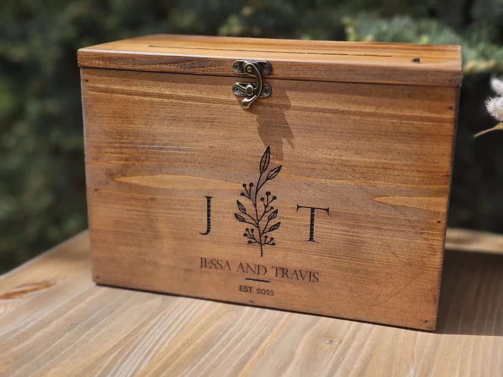 Infuse the charm of rustic elegance into your special day with this Rustic Cedar Wood Wedding Card Box. This timeless keepsake box is more than just a card holder; it’s a treasure trove waiting to hold the sweet memories and wishes of your loved ones. Crafted from rustic barnwood rough cut cedar, it emanates an old-world charm that blends well with the aesthetic of your celebrations. The wood, cleaned yet purposefully left rough, evokes the raw beauty of nature, making it an ideal addition to your meadow wedding romance theme.