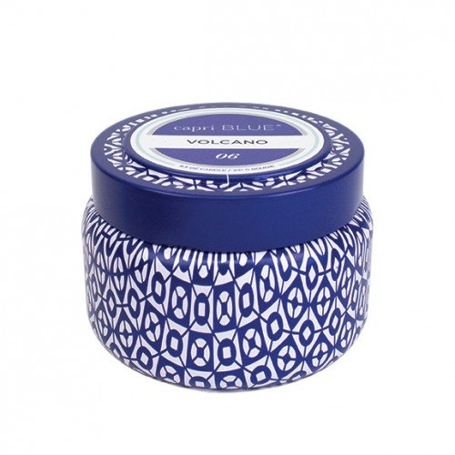 After spending the day soaking up the sun at the beach, help the new couple create a calming and soothing after dark ambiance. The Capri Blue Volcano fragrance blend will extend the pleasure of being in the islands with a wonderful scent of tropical fruits and sugared citrus. Easy to pack for travelling, the tin is beautifully decorated in a blue and white print.